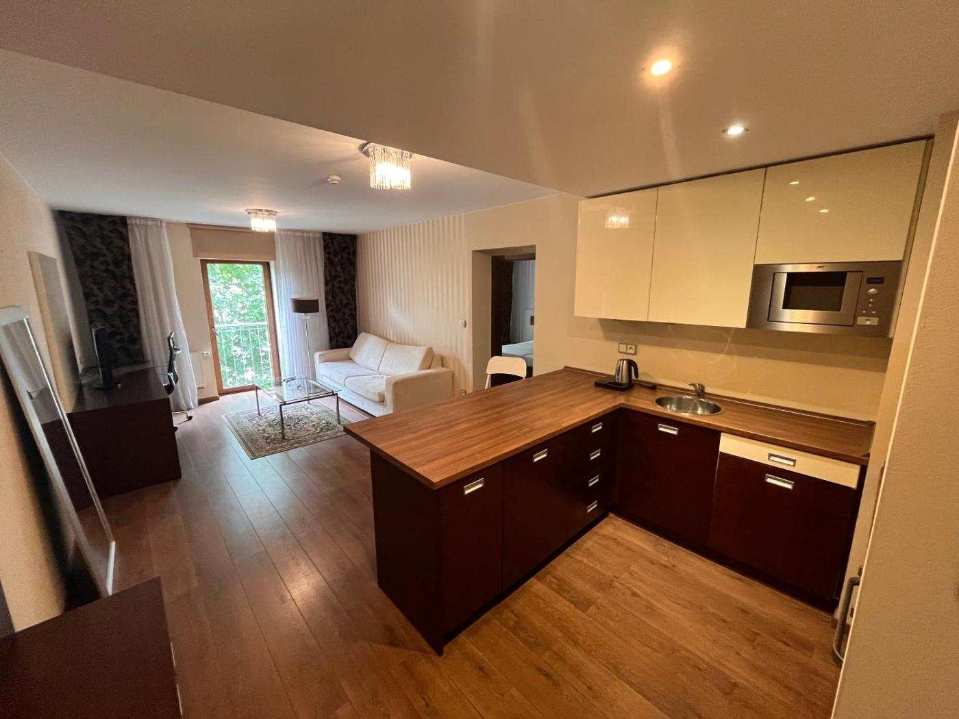 One-Bedroom Apartment. The well-fitted kitchenette has a refrigerator, kitchenware, a microwave and a tea and coffee maker. The apartment features a wardrobe, a safe deposit box, a sofa, a flat-screen TV, as well as a quiet street view. The unit has 1 bed.