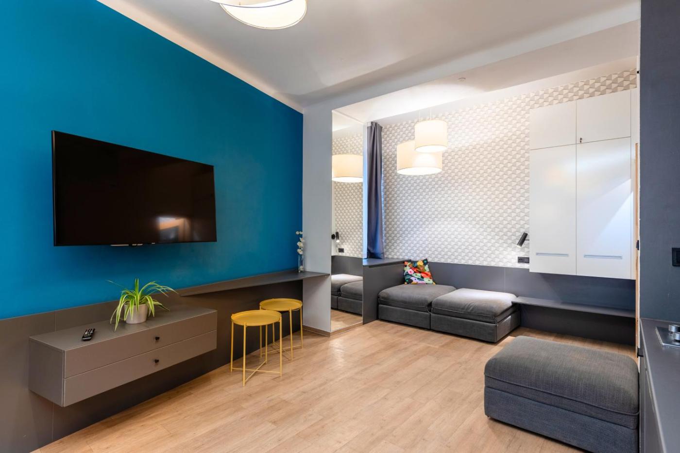 Family Studio. The studio provides a washing machine, a seating area, a wardrobe, an electric kettle and a flat-screen TV. The unit offers 1 bed.