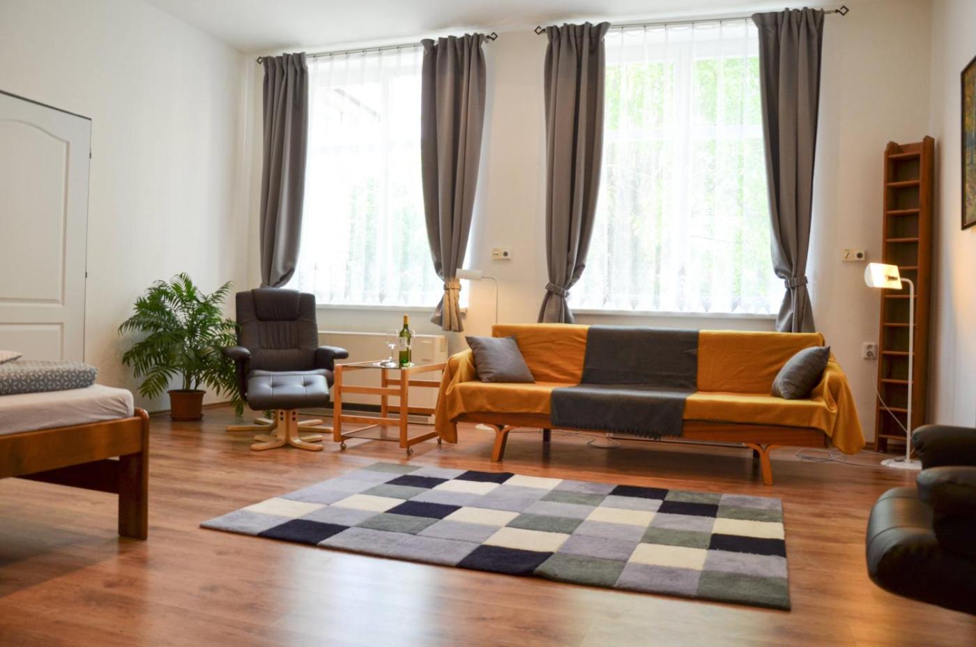 Two-Bedroom Apartment. This spacious apartment comes with 1 living room, 2 separate bedrooms and 1 bathroom with a shower and free toiletries. Guests can make meals in the kitchenette that features a stovetop, a refrigerator, kitchenware and a microwave. The apartment features a tea and coffee maker, a wardrobe, heating, a flat-screen TV, as well as city views. The unit has 4 beds.